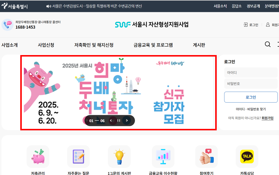 - 문의처: 서울시 희망두배청년통장 콜센터 ☎ 1688-1453